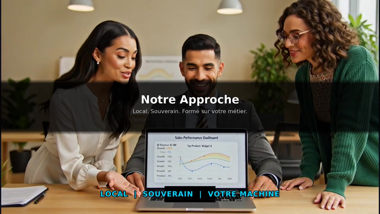 Notre approche est differente. L'intelligence artificielle tourne directement sur vos machines, formee sur votre metier. Aucune dependance cloud. Aucun intermediaire. Vos donnees restent chez vous, votre expertise aussi.